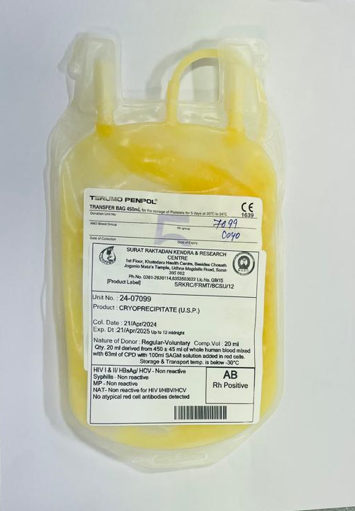 Cryoprecipitate or anti-hemophilic factor is required for hemophilia patients having coagulation factor VIII deficiency. It is also useful to save life of the patient suffering from disseminated intravascular coagulation disorder (DIC).
